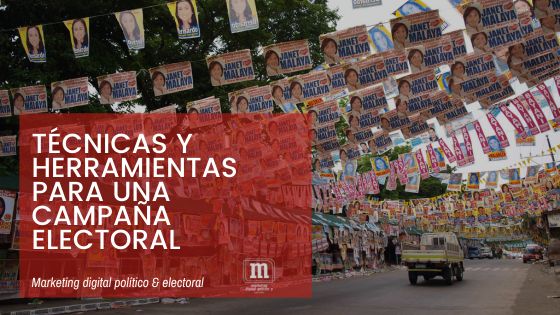 Dentro del marketing político, varían métodos con diferenciales y componentes importantes. Así, el espacio de una campaña electoral se sitúa en los medios de comunicación offline y digitales, como en los medios tradicionales y por supuesto en la calle ?cara a cara?. Pero para avanzar en la estrategia de la campaña política debemos tener en cuenta algunas técnicas y herramientas que permitan el diseño, implementación y ejecución de la misma.